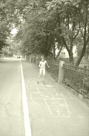 Jumping games are one of the games group that has changed the most during the last 60 years. Jumping games have, in most cases, been adopted from other nations. Such games have come to life quite lately and they represent the quickly changing international town folklore. In Estonia, too, they are mostly girls' games. Though it seems that Hopscotch was popular already in the 1930s, it must have been a relatively new game at that time. During the post-war years popularity of the game grew, some new hopscotch schemes appeared, favourite games changed, jumping sessions or classes became more detailed. It has been overdominated by twist (Elastic Skipping) - though girls knew several kinds of Hopscotch in 1992, they hardly ever used them. Totally new local developments (One Leg, Two Legs; Class: Strawberry, etc.) can be found only in some periphery (e.g. Kihnu Island). Compared to the earlier period the number of Hopscotch played without stones and elements (or boxes) in the schemes and the usage of a private bed (or "home") had increased.