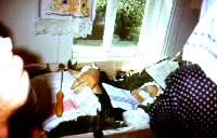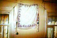 permanganate solution. On the wall beside the window is a iconic scarf
