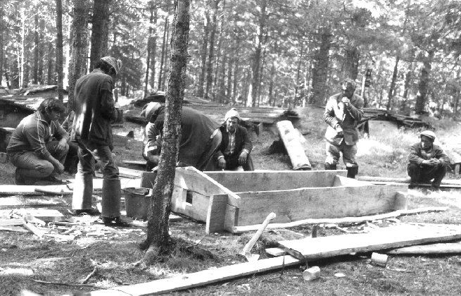 The construction of a gravehouse. The Azovy village, the Shuryshkary region, the Tyumen province. Photo by the author, 1988.