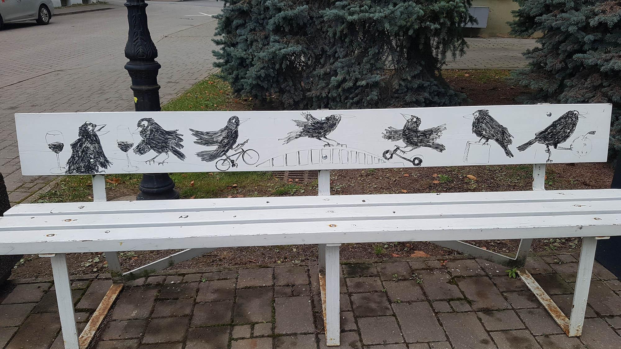Edward von Lõngus tsiteeris ühel seljatoel (vt <https://www.folklore.ee/graffiti/grafitid/koigil-oleks-nagu-usna-ukskoik-mis-olnud-mis-voi-mis-tuleb-1>) oma varasemaid pinkide läheduses asuvaid töid „Koondatud Tammsaare“ (vt <https://www.folklore.ee/graffiti/grafitid/koondatud-h-tammsaare-1>) ja „ „Eluraskustes suitsetav Koidula“ (vt <https://www.folklore.ee/graffiti/grafitid/lydia-koidula-urovicheski-bolezn-hobl-ljohkih>). „Koondatud Tammsaare“ sümboliseerib meie riigi eurole üleminekut, mille käigus „koondati“ ka 25-kroonised Tammsaare pildiga rahatähed. Von Lõngus tegi „Koondatud Tammsaare“ ja eluraskustes suitsetava Koidula (Vabaduse pst 4, Magistri tn poolsel küljel) 2011. a peale Eesti krooni kadumist ajalukku Ka Koidula „koondati“ eurole ülemineku käigus, sest käibelt kadus ka 100-kroonine „Koidula“.
