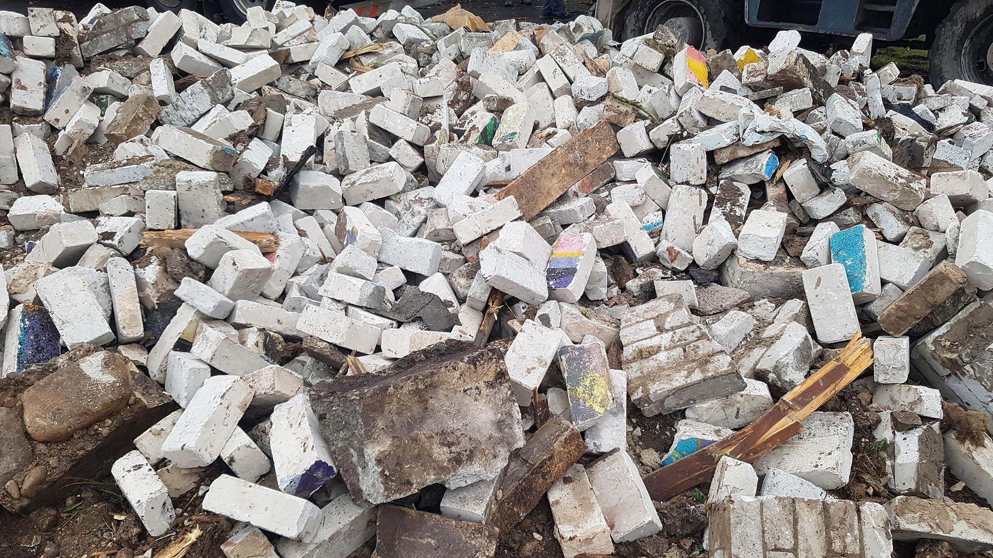 2/2. Garaažid, mis lammutati oktoobri lõpus 2025. a (27.oktoobril oli garaažide kohal vaid grafiti jäänustega silikaatkivide hunnik.