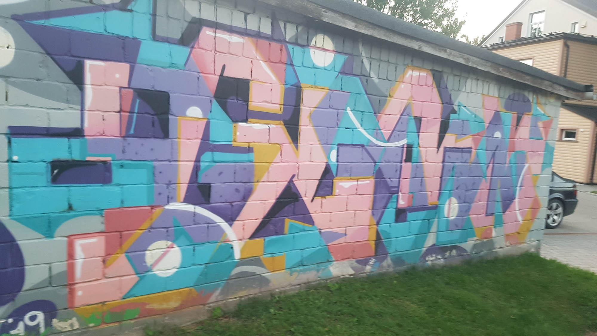 Garaažide tänavapoolset otsaseina kattis minu jaoks loetamatu egotekst.