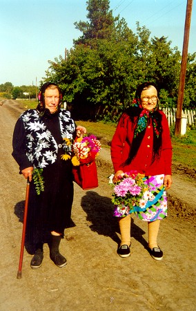 Ann Klaus ja Helena Bertis Rõzhkovo külateel. Foto A. Korb 2000