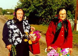 Ann Klaus ja Helena Bertis Rõzhkovo külateel. Foto A. Korb 2000