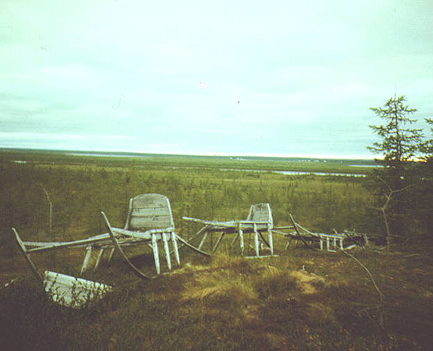 Nganasan burial places in the tundra near Ust-Avam village. Photos (38K and 57K) by A. Lintrop 1989.