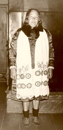 Anja from Povodimovo in the ritual clothing of wedding hostess, wearing an iconic scarf around the neck. Photo by Riin Alatalu, 1989. Private photo collection.