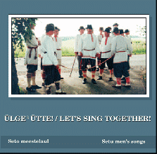 Paul Hagu (producer)Hoi ta_ks velekeisi vai! noorõ-jallõ-kõisi (Hey, young men!) CD. Recording by Jaan Tamm. Setomaa, 2000. The album contains 24 Setu songs mostly from Uusvada and Meremäe, but some also from Helbi, Värska and even Tallinn. The songs were recorded during 1972-1999. The style of men's singing is truly awe-inspiring. It is thrilling like a lion's roar and tense like an arrow ready to be shot, offering enchanting fioriture - glissandi and melismata, calls and embellishments. Even an Italian tenor would bow to the richness of artistic expression that these old men's songs entail. The fact that the lyrics are often inaudible is part of its charm. As to the tunes of the men's songs the available material suggests that there are only two melody tunes. The first is actually a bachelor song, and is called kul'atamine in the Setu-Võro dialect. The tune begins with a move to the fifth from the tonic, quavers around the highest note and falls only to let the killõ catch the note and add another bright almost voice-breaking high note. The aim of the bachelor song seems to have been making oneself heard and identifying oneself through one's voice. When unmarried young men went to walk around the village in the evening, the song preceded them and it had to be heard far ahead. The result was astonishing. I remember it from my own experience during the first recording sessions in the assembly hall of the school of Meremäe in July 1972. The voices of these seven aged men were even more powerful than was needed to fill the whole hall. The second tune is actually the proper melody of the men's song. Its lyrics are bound with the song and singing and it is called ilopidämine. This tune is less extravagant, using mostly the lower tones of the scale, and even the pitch pattern first descends and only then the tune slightly touches the peak. The melody of men's song is low and its true effect is hidden. Both tunes remind the listeners of the Phrygian mode that uses 5-6 degrees. Men have also performed at weddings and other festive celebrations, though often accompanying female singers. On this cassette the song type is represented by songs with female soloists. Female singers may sometimes even perform the part of killõ. On such occasions the songs are performed to different, in fact, women's tunes that require voices with less strength and endurance, but where lyrics are of greater importance. Studying the lyrics of the Setu men's song one cannot help noticing the plethora of extra syllables and recurrent words. Instead of the 9-11syllabic notes typical of the women's song the men's song contains 13-15 or even more syllabic notes. This explains why it is often hard to listen to the lyrics of men's song, although with attentive listening it should be possible to distinguish at least some words. The songs speak about desiring the purple woman, laughing at an old maid and bachelor, recalling warfare in Transvaal and searching for the grey mouse. I was most astonished at discovering two field songs, which are very rare, perhaps even unique in the Estonian folklore tradition. The contribution of Paul Hagu is immense - he has collected 120 Setu men's songs, systematising these by tunes. Relying on the long tradition he has described the very essence of the men's song tradition and has arranged the songs in successive order to achieve melodic harmony. Indeed, it sounds good and we must only hope that the Setu men's song will be heard not only on this tape but elsewhere too. We need more of these songs that render men so strong and powerful. Vaike Sarv |