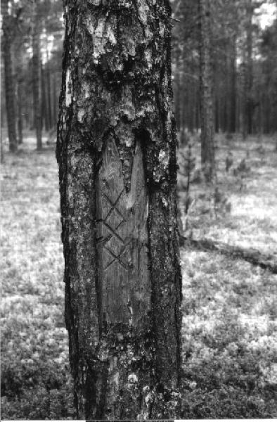 - Marks (il'kon) cut into a tree trunk by the Evenks, used as signposts. Made