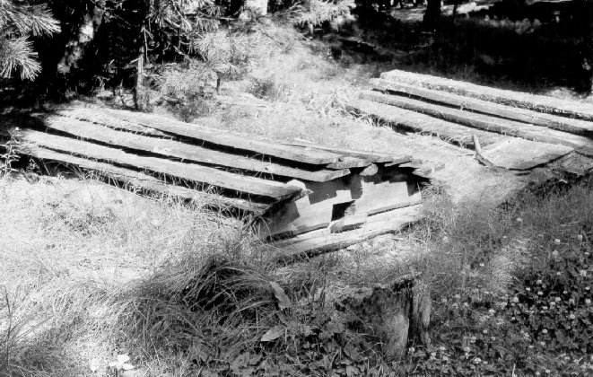 Graves in a Khant graveyard. The Azovy village, the Shuryshkry region, the Tyumen province. Photo by the author, 1988.