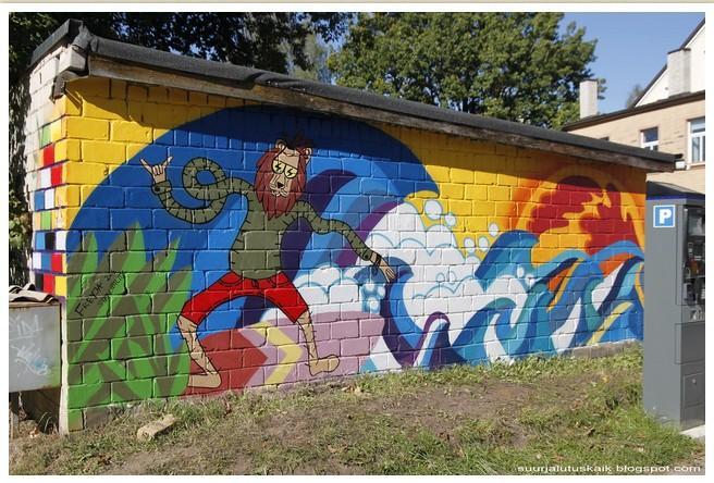 Google’i 2014. a tänavavaatel on garaaži tänavapoolsel otsal näha tekstid „AK/US“, „JAMAICA / PARADISE“ „OLED KÕIGILE“, „TAKS“ ja „615“. Seejärel maaliti garaaži otsaseinale kogu seina kattev rõõmus merekalda maastik kõhna ja pikkade koibadega põlvpükstes ja trikoosärgis ning käepaela ja välku löövate prillidega inimesetaolise lõviga. Seinamaal oli signeeritud „Freyja 2016 /STENCIBILITY“. Selle tööga võitis tänavakunstnik Freyja Stencibility 2016. a seinakonkursi, vt <https://suurjalutuskaik.blogspot.com/2016/09/stencibility-minu-esimene-sein.html>.