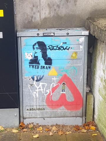 FREE IRAN [Mahsa Amini portree] / [valge kassi pea] / [punase laia joonega tagurpidi süda] / [valge joonega süda ja selle kohal rist] / ·RIZEK·