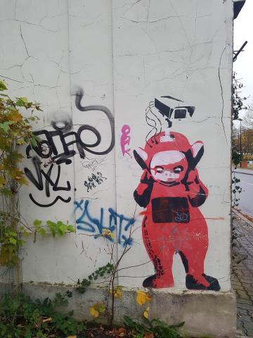 [Peegelpildis] Edward von Lõngus 2013 / [teletups Po, kellel on antenni asemel peas kaamera]/ [kaks peegelpildis ulguvat hunti] / [väike ristitaoline moodustis ja number] 8 / VXL / BLACK HOL…