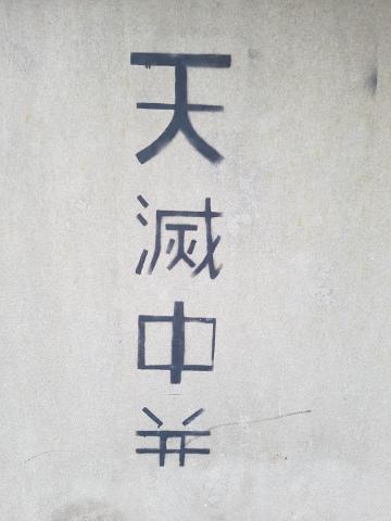 Tian mie Zhong gong [tõlkes: Taevas hävitab Hiina Kommunistliku Partei, defektses hani ehk hiina kirjamärkidega kirjas, siin pinyinis; toonimärkidega Tian1 mie4 Zhong1 gong4]