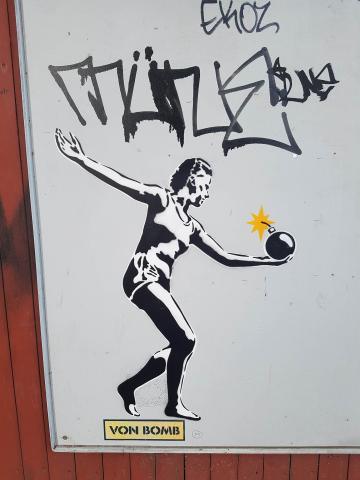 [„Sädeme kandmine" ja signatuur =] VON BOMB / Viska Siia hoopis, palun! / EKOZ / Notoski / [väike käsi] / [pika ninaga mees] / [häda tegev elevant] / [pika kleidi ja kübaraga lind] / [penis linnu kübaral] / [väike kass]