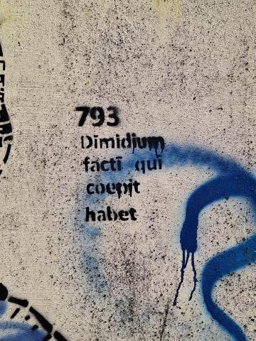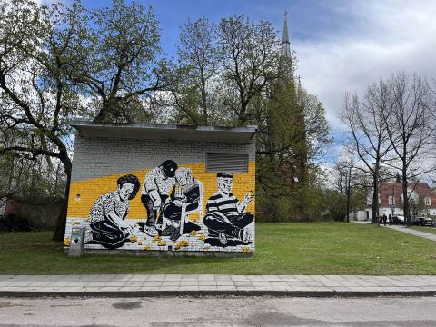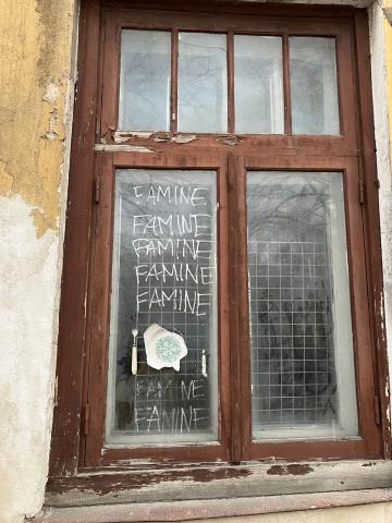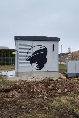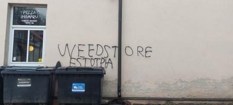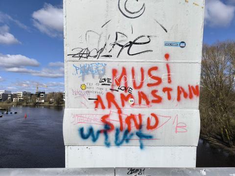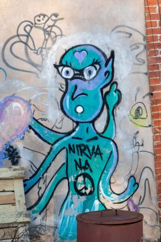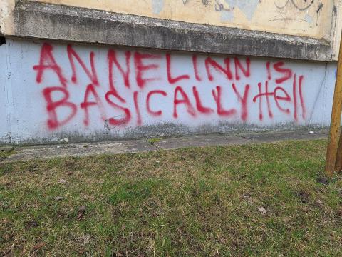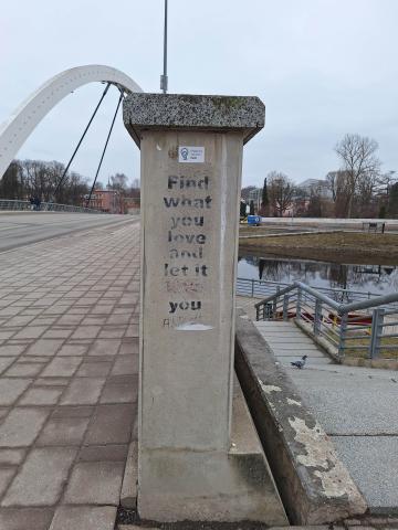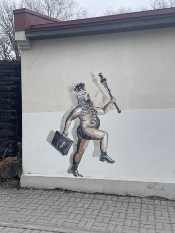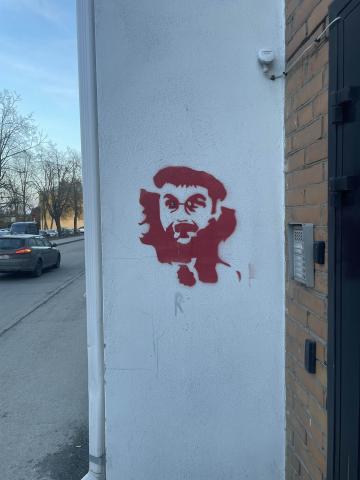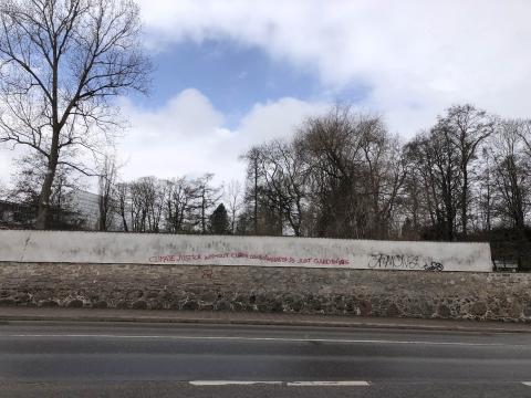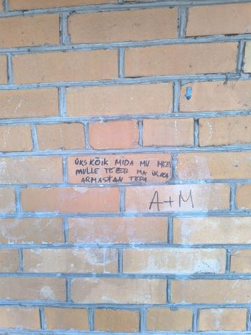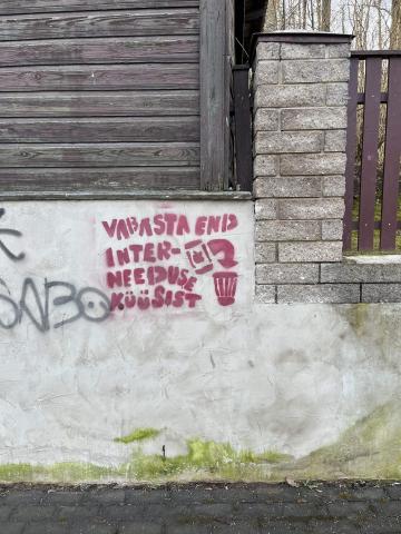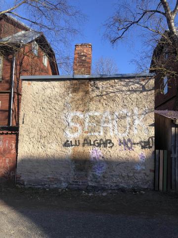 Grafiti märtsis 2025 lammutatud tootmishoone seinal