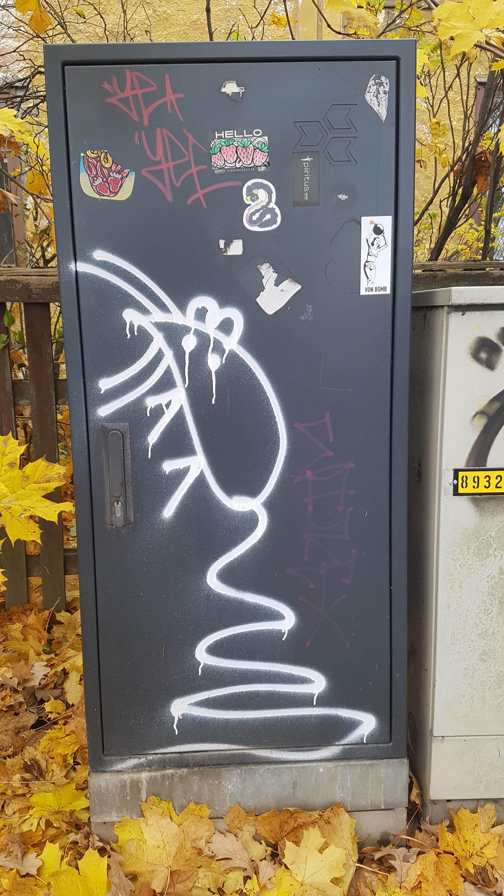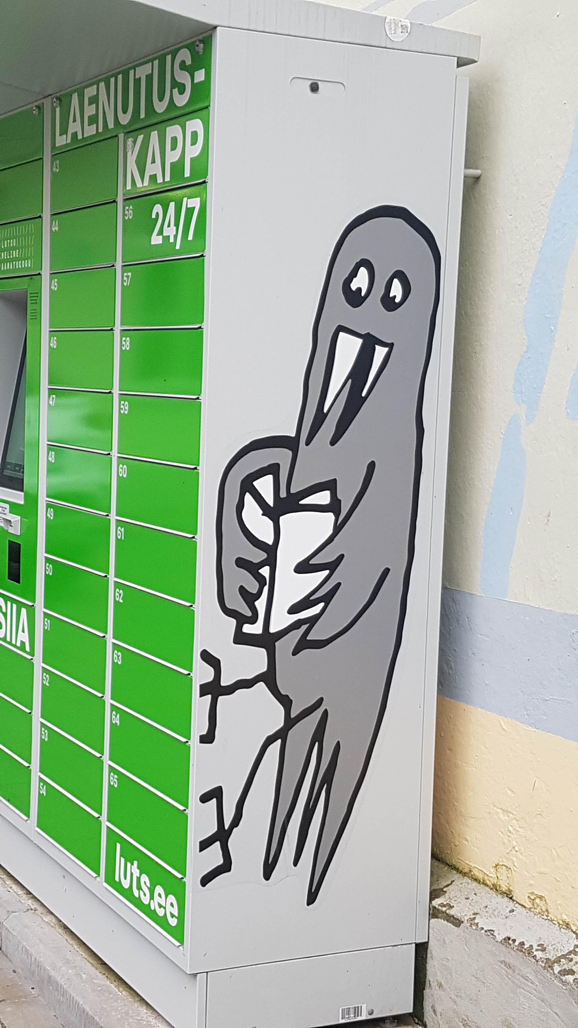 [Kosmoloogiline seinamaal (mural) „Metsavaim“; autori logo ja signatuur:] GOAL / NUEVE ARTE URBANO / MEXTONIA FESTIVAL
