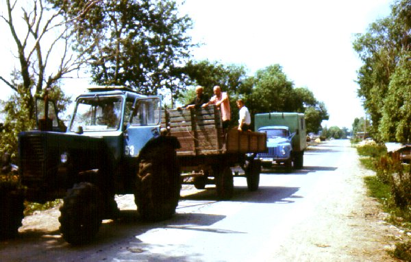 Matuserongi lõpus sõitis traktor, selle kastis oli kümmekond hauakaevajat ja suur raudrist. 1989 a juuli Povodimovos.