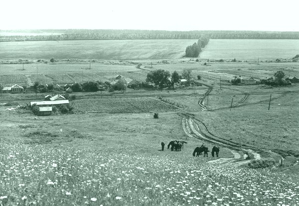 | Vaade küla lääneosale: hobused söömas. Mordva ANSV, Kovõlkino raj., Staroje Pshenevo k. J. Karm, 1985. (Fk 2131:129) |
