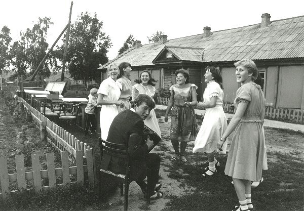 | Koolilõpupidu Staroje Pshenevo keskkoolis. Tshastushkade lauljad. Mordva ANSV, Kovõlkino raj., Staroje Pshenevo k. J. Karm, 1985. (Fk 2131:15) |