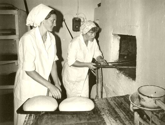 ![]() 'Valgesse leiba paned soola, sõtkuvad, see kerkib, nõude sisse vormivad ja ta veel kerkib. Ahi on küdenud, ajavad söed laiali ja panevad [leiva] labida peale ja ajavad ahju'. |