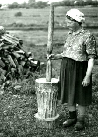 ![]() 'Nad kuivatavad kaera, tambivad jahuks, loputavad, jahu lasevad läbi sõela; puhta jahu valavad kastrulisse; valatakse vett, soola, keedetakse ja segatakse kolm-neli korda ja see pakseneb, siis keevad'. |
