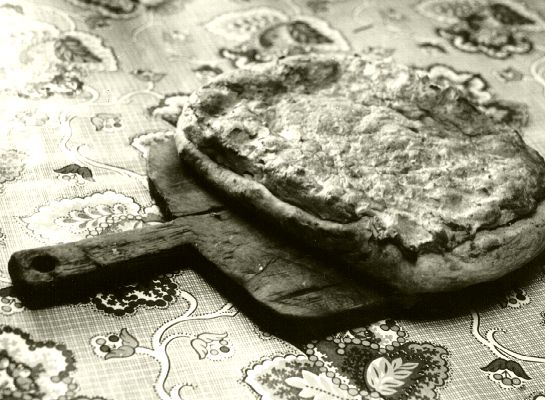 ![]() 'Paned valget jahu, selle keskele koorega piima ja võid. Veeretavad, lõikavad noaga, kolmenurgeliseks lõigata ja panni peale. Võiga määrivad üle ja ahjus tule juures küpsetavad'. |
