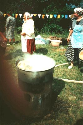 | Mordva rahvuspüha Rasken Ozks. Keedetakse ohvrihärja lihast suppi. Chukaly küla lähedal. I. Tenno, 1999. |