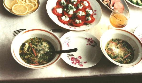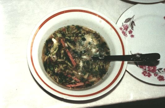 | Olga Rjabova tehtud külm supp salved või okroshka. Mordva, Taula k. (Podlesnaja Tavla). I. Särg, 1999. | |||