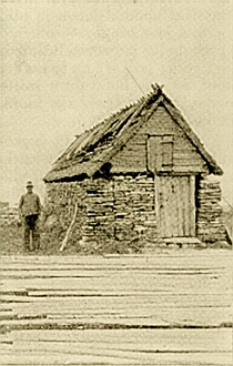 Igal külal oli oma noodamaa (= maja). Üks palgikord oli all (mõnel es olegi), ungad ja latid peal, roost tehti katus ja muda aeti ka (peale), et siis soem. Ukseauk oli, akent põle olngid. Ukseaugu ette pisteti ööseks õlevihk. Õled olid sees ja lumeang oli õlgede all. Seal magasid segamini mehed ja naised, poisid ja tüdrikud. Kasugad kaasas.