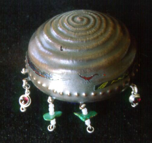 Kupari, hopea, emali, emalimaalaus, turkoosit, granaatit