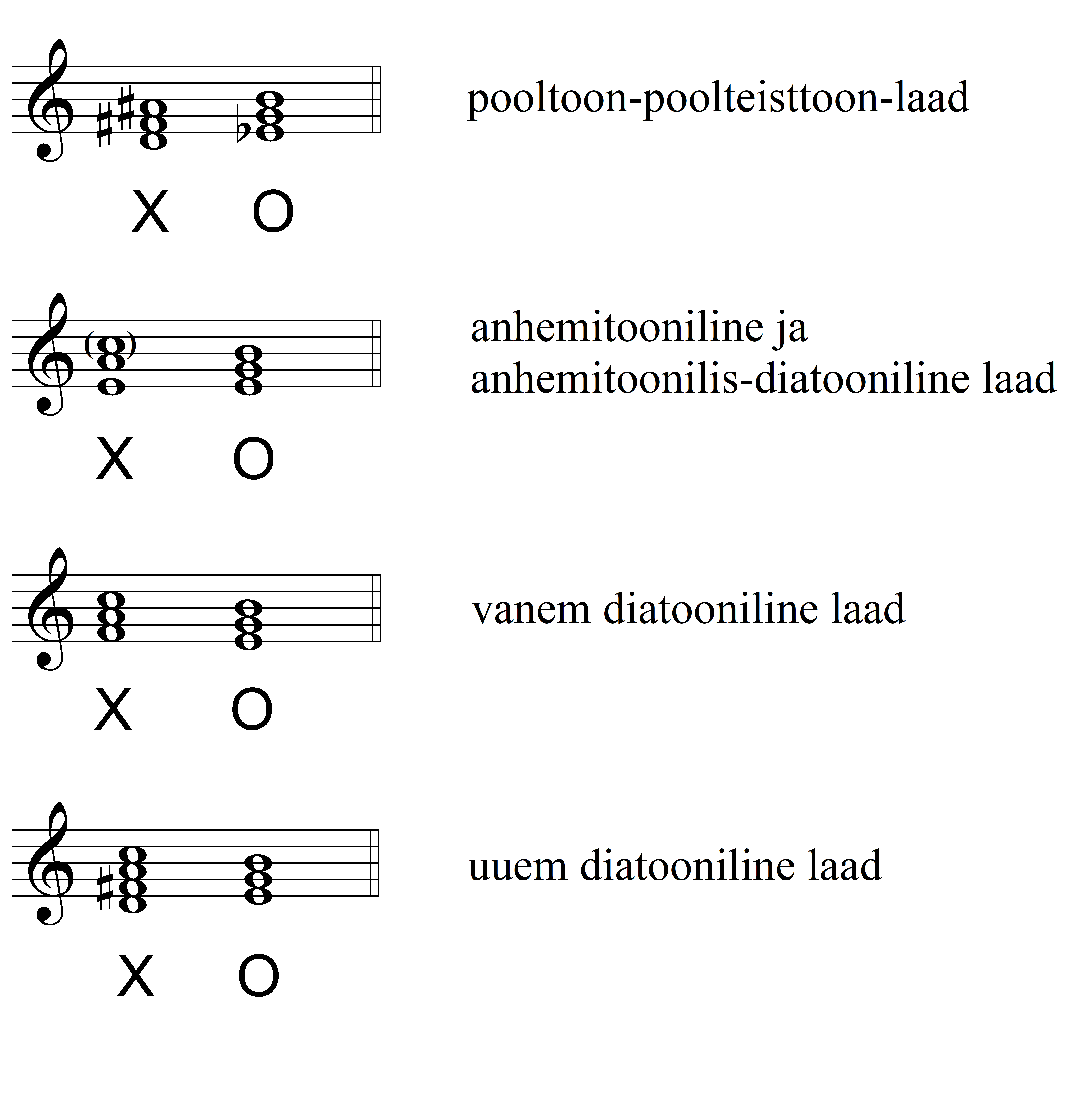 Näide 1. Harmoonilised kompleksid erinevates helilaadides.
