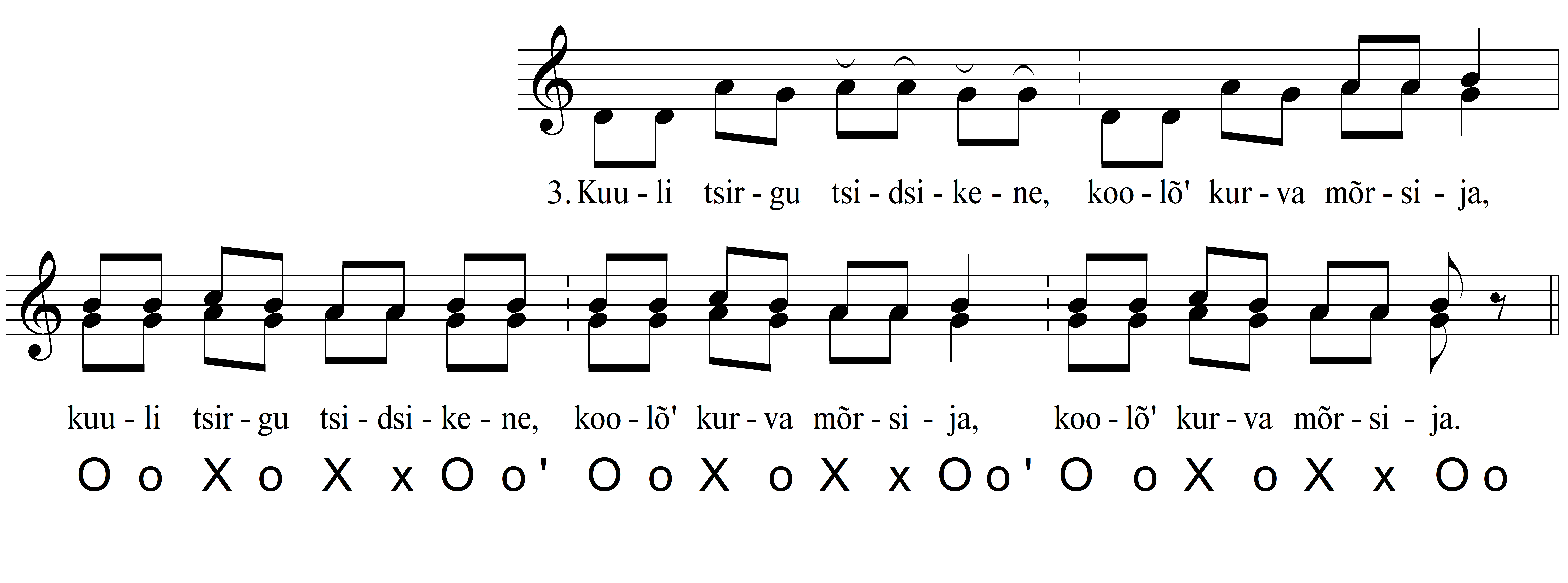 III.A.1.a8. ||: Oo Xo/Oo Xx Oo :|| 3 korda. Tekst AR || ARR. Mõrsja koolõtamine