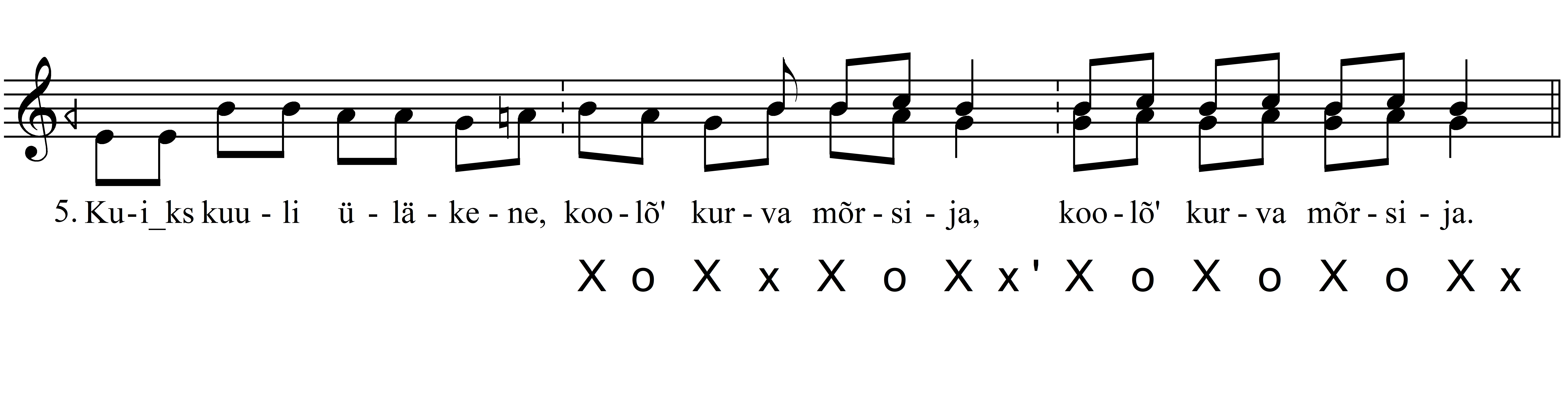 Näide. Mõrsja koolõtamine (mängulaul), Olga Ohtla kooriga, Mikitamäe k., 1986 (EKRK, Fon. 111 a19).