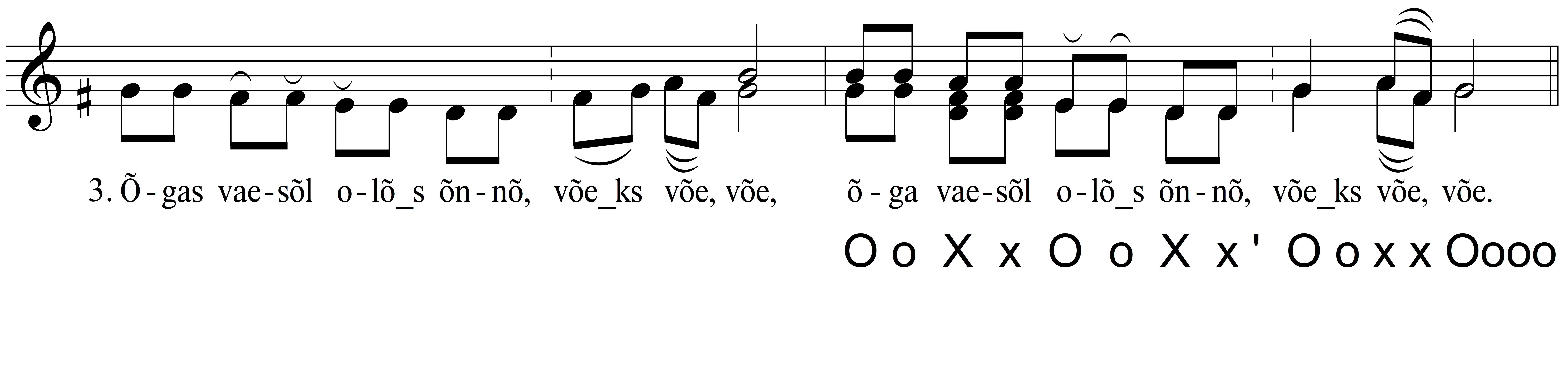 III.B.1.c1. Oo Xx Oo Xx |Ooxx Oooo| Silbirütm refräänis 4 4 2. "Vanatüdruku matus" jt
