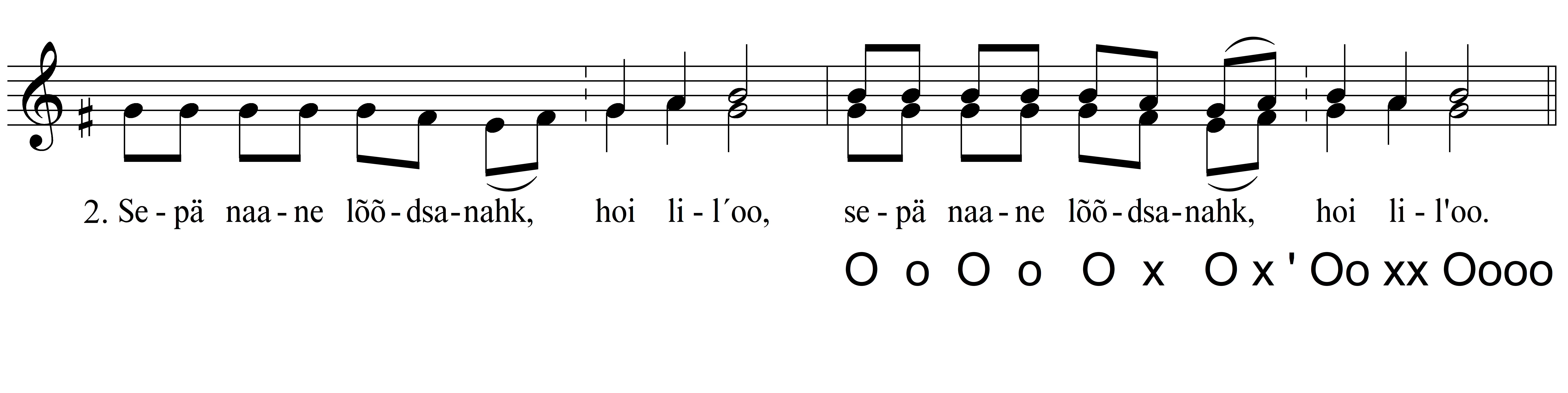 Näide 1. Sepp, sepp, hüdsekott (tantsulaul), Jakko Olli kooriga, Duplevo k., 1912 (ERA, Fon. 55 c).