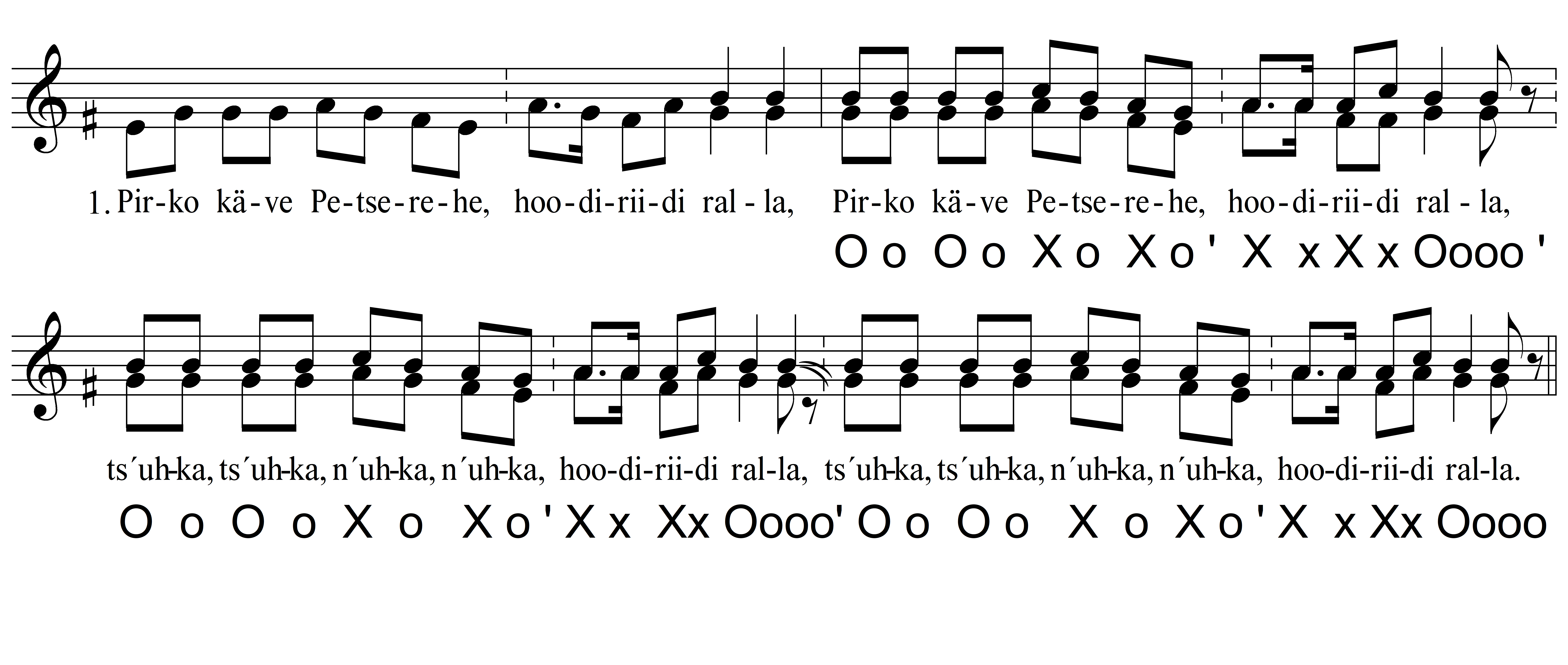 Näide. Pirko käve Petserehe (lüürika), Veera Aida kooriga, Obinitsa k., 1972 (RKM, Mgn. II 2326 g).