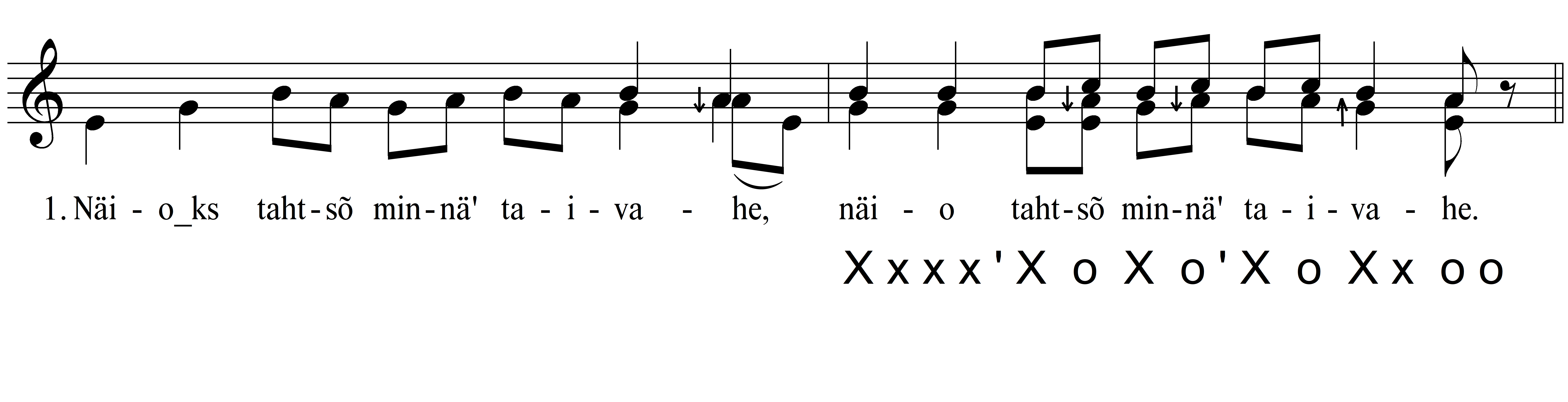 Näide. Näio tahtsõ minnä’ taivahe (lüroeepika), Maria Lõhmus kooriga, Obinitsa k., 1990 (ERA, DH 220 (12)).