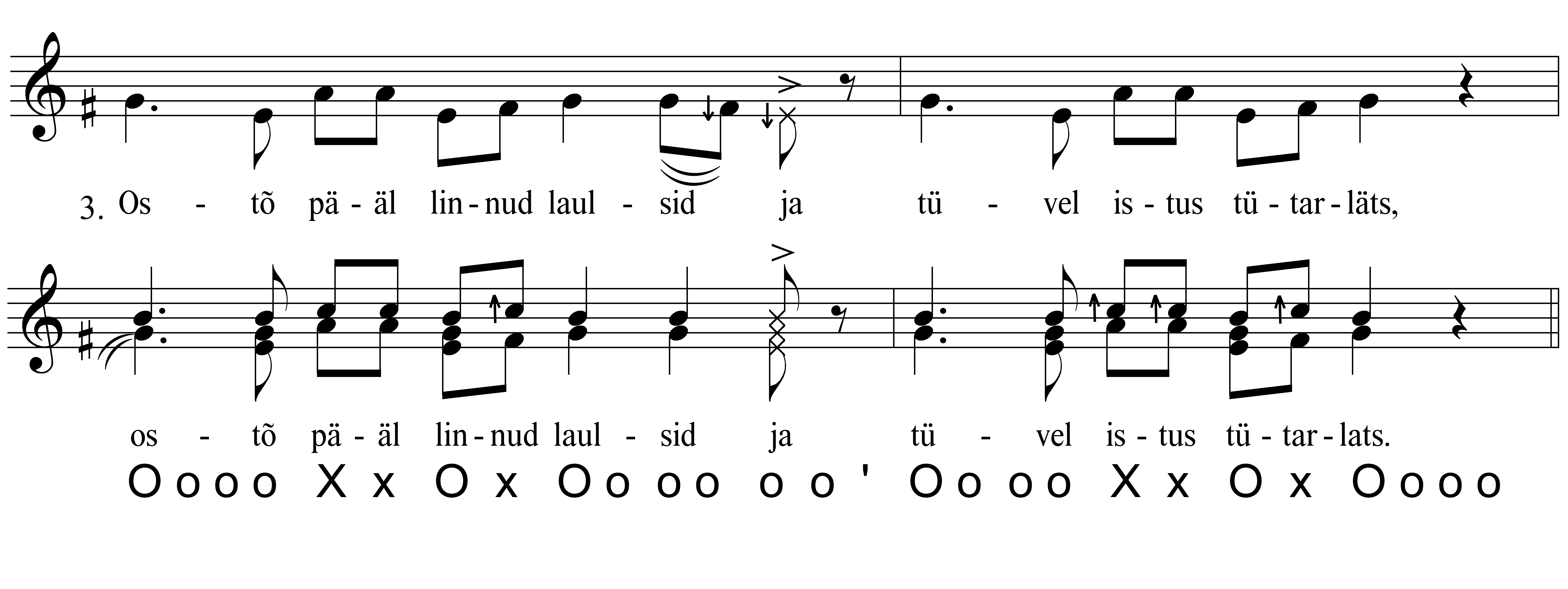 II.E.4.c. ||: OOXXOO :|| 2 korda. Silbirütm 4. 8 88 88 44/2 . "Tammõkõnõ" jt