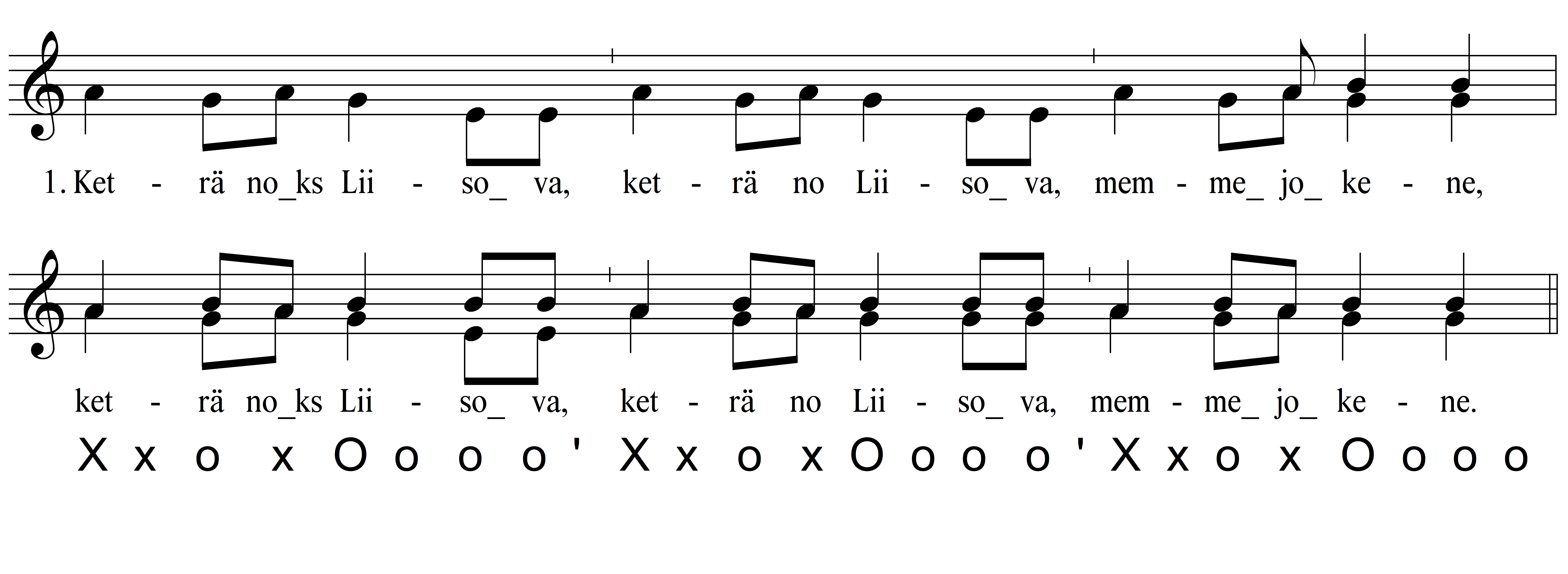 Keträ no_ks, / Liiso_va, / keträ no, / Liiso_va, / memme- jo / -kene