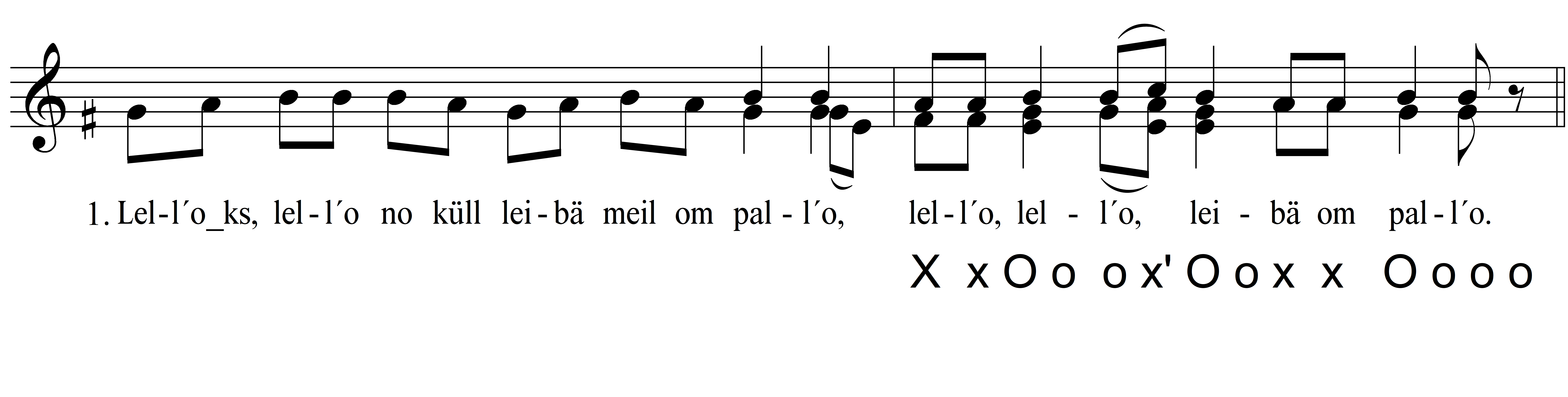Kirjeldatatava viisitüübi HR varieerub erinevates esitustes – nii leiame Hilana Taarka viisiversioonis mudeli Xx Ooxx ‘ Oooo Oooo (XOX ‘ OOOO) (näide 1), Anne Vabarna variant on aga Xx Ooox ‘ Ooxx Oooo (XOX ‘ OXOO) (näide 2). Kui võrrelda kahe esituse HR üldistatud (st veerandnootides) skeeme, siis selgub, et põhiliselt erineb siiski ainult ühe löögi funktsioon.