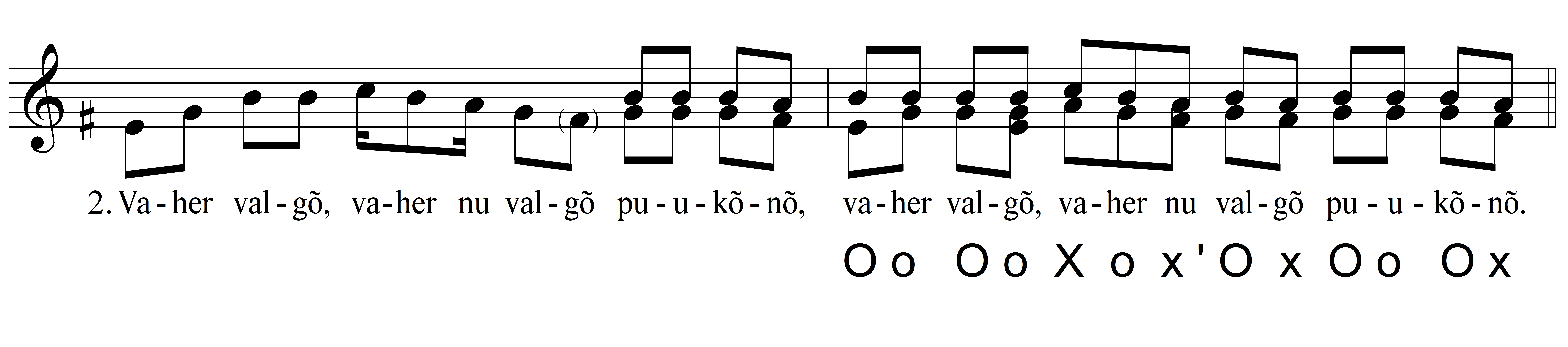 Viisitüübi mõlemas esituses on kasutatud uuemat diatoonilist helirida E-fis-g-a-h-c. Tänu meloodia ehitusele jätab viis „minoorse“ laadi mulje (siin noodistustes e-moll). Selline helirida on tavaline meeste viisides, mis toetuvad sageli kvindile e-h, kuid lõpevad enamasti mažoorsel tertsil g-h. Siinse viisitüübi omapära seisneb lõpufunktsioonis X, mis on seto diatoonilistes viisides üsna haruldane. Eriti ebatavaline on see, et viisi lõpp mõjub harmooniliselt ebapüsivana ja kõlab üleminekuna järgmisele melostroofile. Uuema stiili tunnuseks on killõ liikumine paralleelsetes tertsides torrõdega.