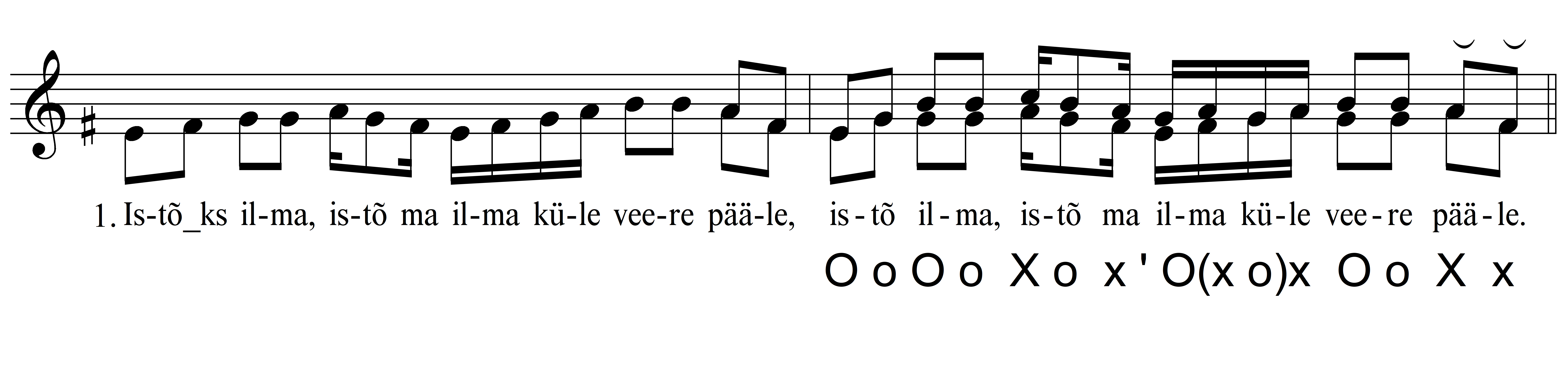 Näide 1. Istõ ilma veere pääle (lüürika), Jaan Jallai ja Nikolai Jallai, Helbi k., 1972 (RKM, Mgn. II 2298 (k)).