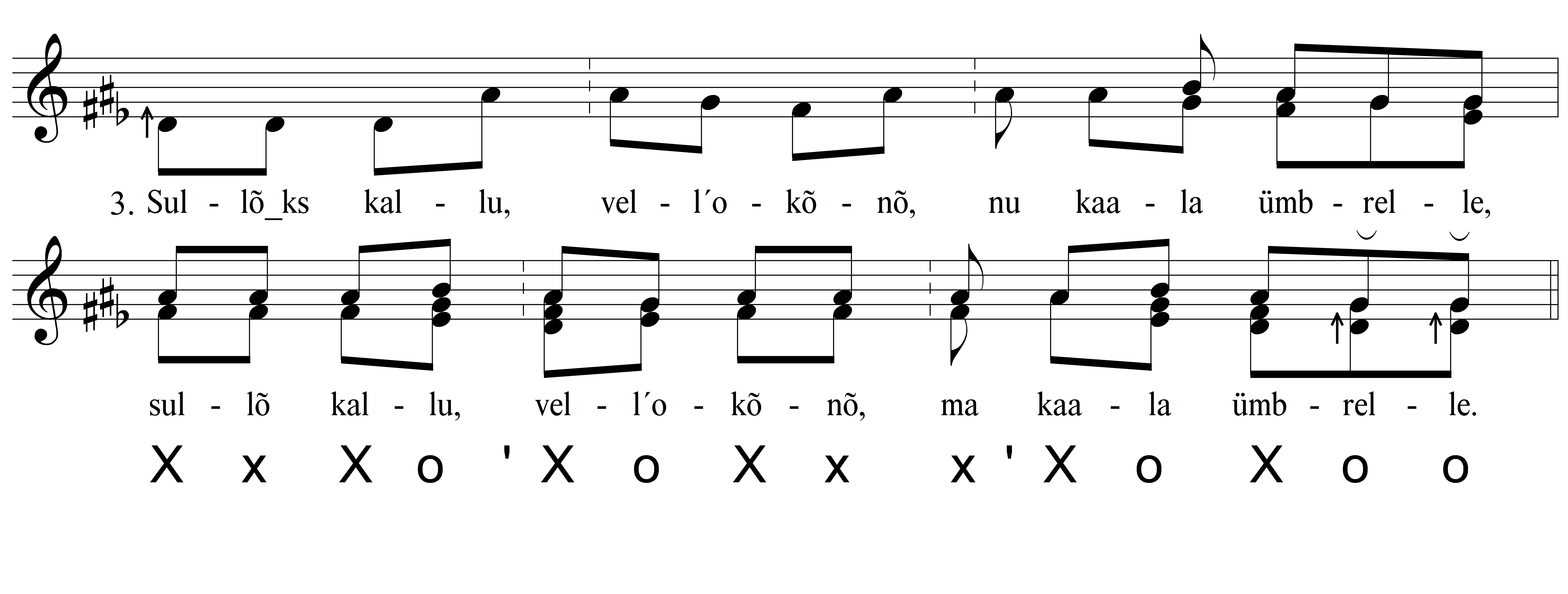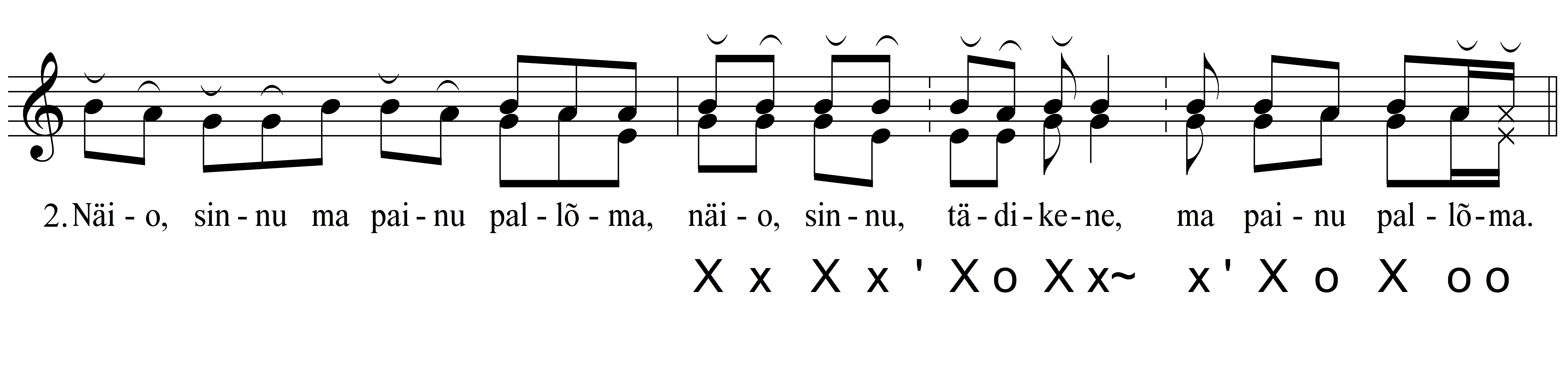 - RKM, Mgn. II 2095 b < Põlva raj., Mikitamäe kn., Suure-Rõsna k. – Herbert Tampere < Elena Laanetu, 62 a. ja koor (1971) [Vell’okõnõ, mu armakõnõ]