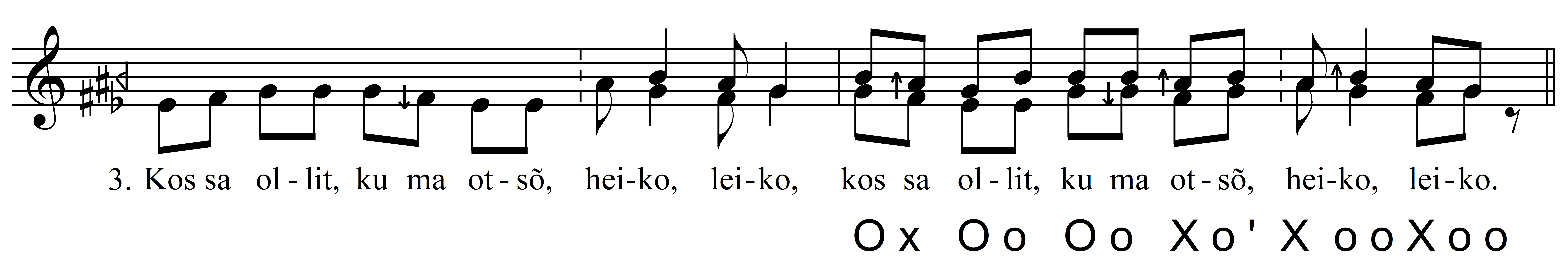 Laiendamata viisirida (7-8 meetrumiühikut) ja neljast silpnoodist (2 + 2) kontrastne refrään (AR