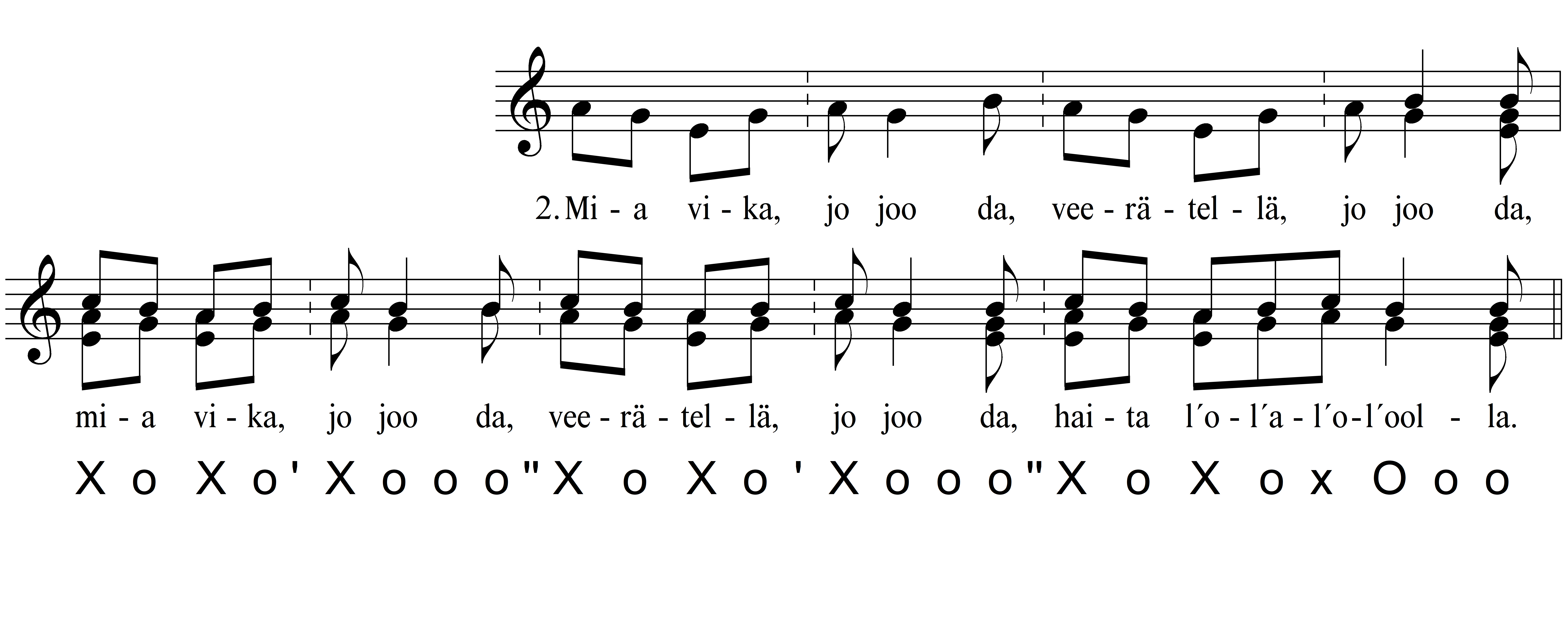 Viisitüübis I.C.2.a4, nagu kõigis rühma I.C.2 viisides, moodustab poolrida koos refrääniga korduva vormiüksuse (fraasi). Siinses viisis on korduva fraasi HR mudel Xo Xo |Xooo|, kuid eespool kirjeldatud muusikalistel põhjustel võime kuulda teistsugust silpnootide grupeeringut – Xo Xox Ooo (st silbirütmi