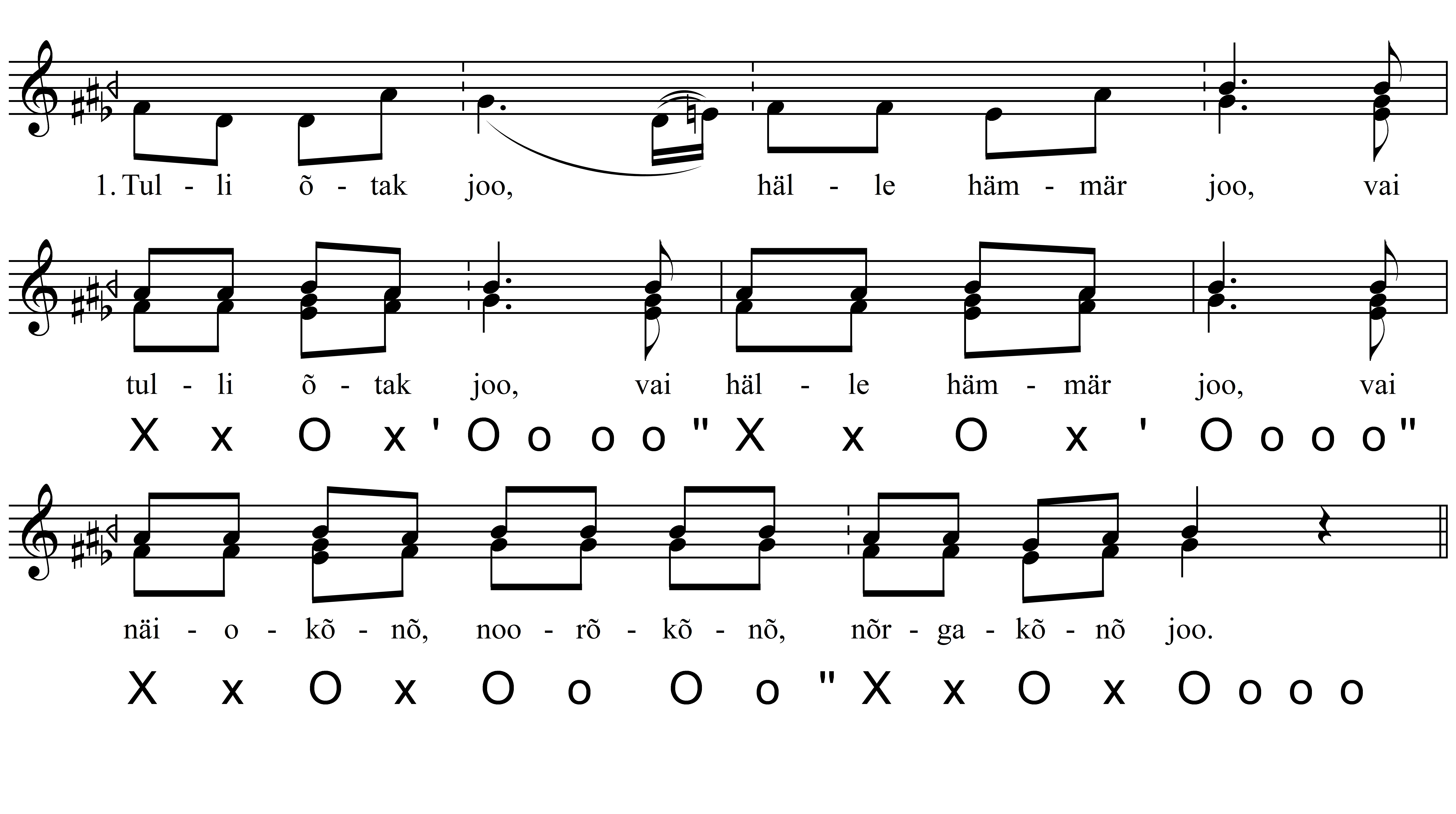 Viisitüübi I.C.2.a2 paigutasin laiendamata värsireaga viiside rühma I.C seetõttu, et teksti põhirida, mille refrään jagab poolridadeks, moodustab kokkupanduna kaheksasilbilise regivärsi: „tulli / õtak, / hälle / hämmär”. Kuna põhirea silpnoodid moodustavad ainult kahelöögilisi rõhurühmi, lühikeste refräänide pikkus on sama mis poolridadel ning pikas refräänis kasutatakse samu fraase, mis ülejäänud melostroofis, osutub viisi kooriosa vormistruktuur mõnes mõttes „kvadraatseks“ ning selle meetrumit on võimalik tajuda mitmetasandilisena (see tähendab, et kõiki kaheksandiknootide lööke saab ühendada kahe- või isegi neljakaupa). Sellist struktuuri võib tõlgendada uuema stiili tunnusena (eriti mitme teise I.C.2.a rühma viisi taustal, mille rütm ei ole sümmeetriline), kuid tegemist võib olla ka välise muljega. Teisalt osutab viisitüübis kasutatav pooltoon-poolteisttoon-helirida pigem vanemale stiilile. Viisitüübi vanuse üle arutlemiseks vajaksime rohkem helisalvestisi.