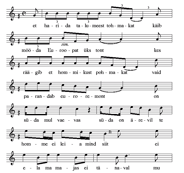 noodistus on kirjutatud Contra laulmise järgi. Siiski on see