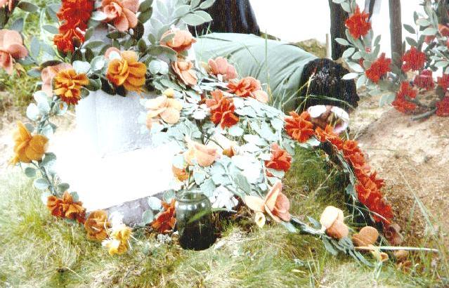 Viimastel aastakümnetel moodi tulnud hauakujundus, kus esineb ka sovjetlikke elemente, peamiselt viisnurki. Itkeja pildil on traditsioonilises kummuliasendis.