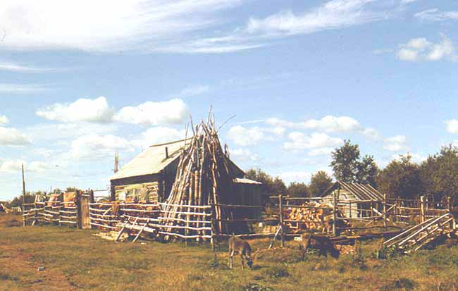 koos kõrvalhoonetega. Ust-Voikari küla. Foto A. Lintrop 1989. | Mansi sammasait Ljapini