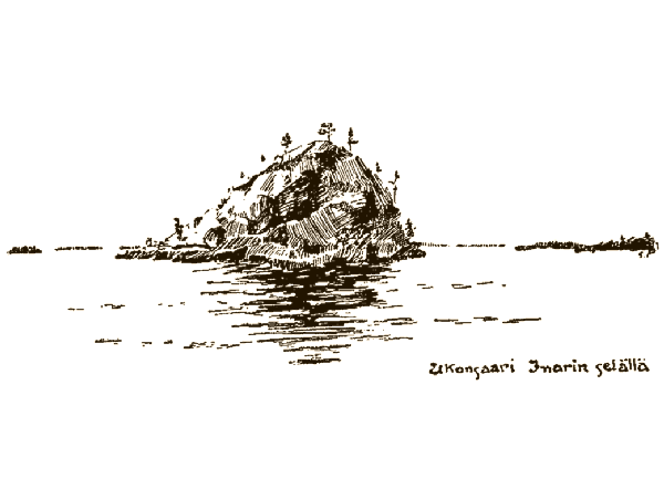 Inari järve Ukonsaari. Samuli Paulaharja joonistus. Haavio 1947: 317 järgi.